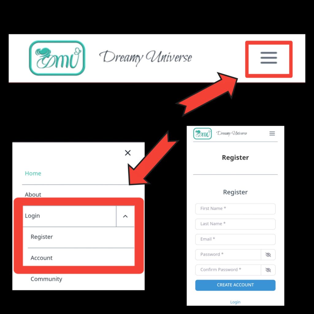 முகப்பு – Menu – Login பக்கத்துல ஒரு குறி இருக்கும். அத தொட்டா கீழ “Register” இருக்கும். அதுல போய் பண்ணிக்கலாம்.